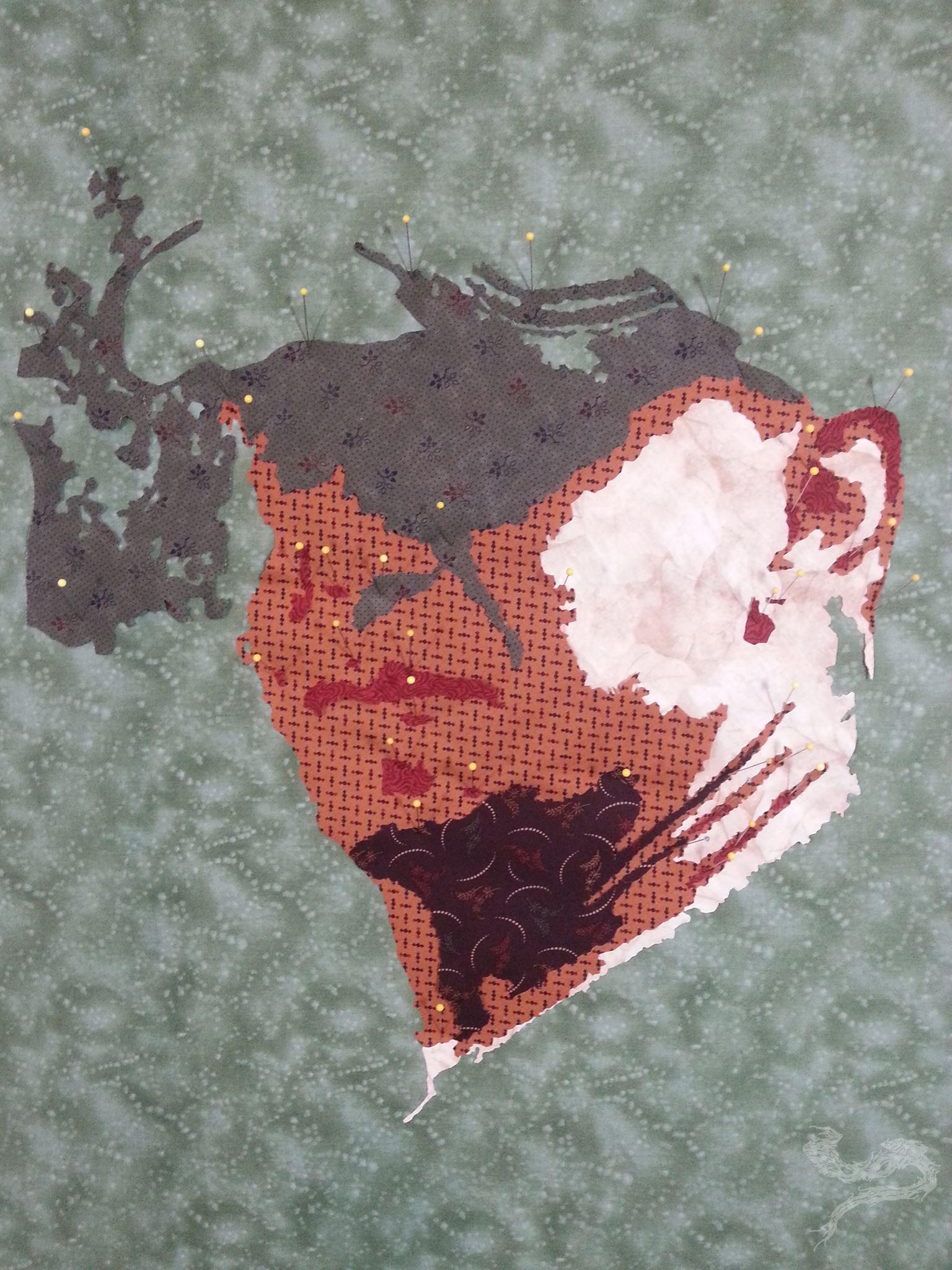 It took a little bit of clean-up, and a little bit of fussing with some of the pieces, before I was ready to start fusing pieces down and pulling the pins.