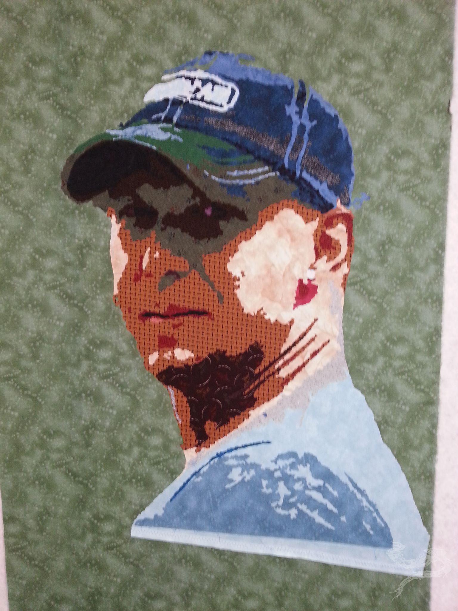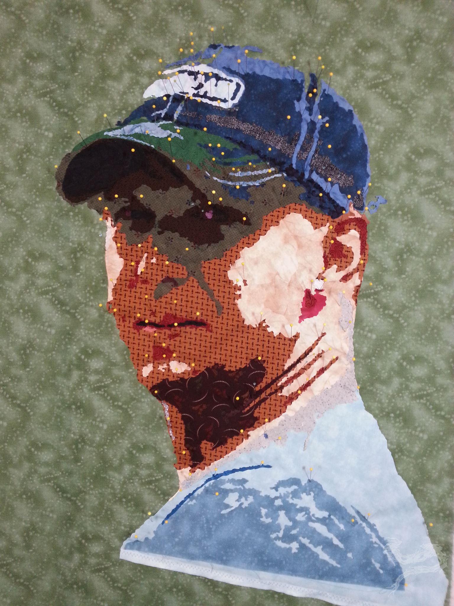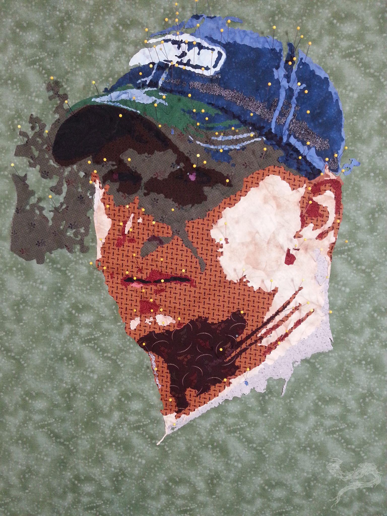 The baseball hat was starting to come together quite nicely. If I’d put more detail in, you’d have seen where the quilt title came from – the patch on the hat. (It said “Bite Me”) I, jokingly, told my friend that I’d name the quilt after his hat. He agreed. The title stuck.